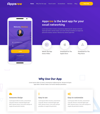 AppsRow is a fully responsive Bootstrap 5 HTML5 template designed for mobile apps, saas applications, software, digital products etc website