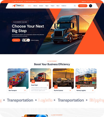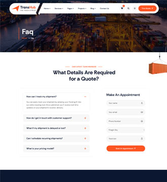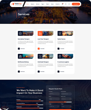 Packed with 40+ beautifully designed inner pages, including Shop, Blog, and dedicated Tracking, Quote Request Pages!